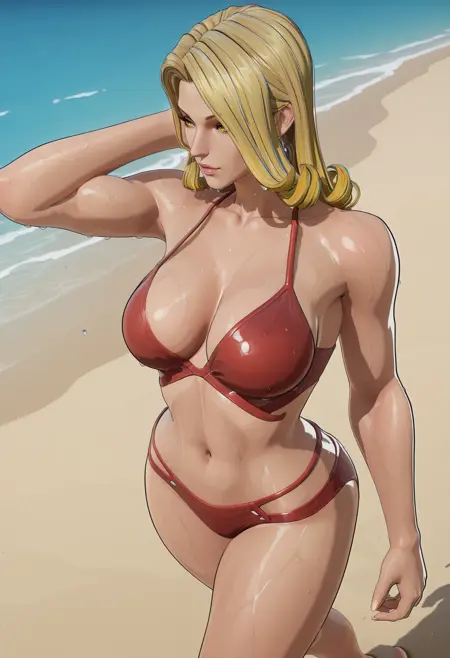 mm,mature female,blonde hair,short hair,blue eyes,lipstick,blue lips,makeup,3d,realistic