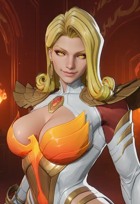 | 训练词汇 | mm,mature female,blonde hair,short hair,blue eyes,lipstick,blue lips,makeup,3d,realistic已复制! normal costume,earrings,chest jewel,choker,cleavage,diamond (gemstone),white leotard,coattails,knee boots已复制! mm,mature female,blonde hair,long hair,yellow eyes,3d,realistic已复制! Phoenix costume,earrings,jewelry,glowing,cleavage,shoulder armor,bracelet,leotard,phoenix leotard,gloves,white gloves,coattails,thigh boots已复制! |