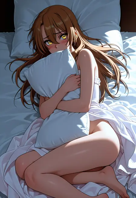 1girl,brown hair,yellow eyes,hair between eyes, long hair,