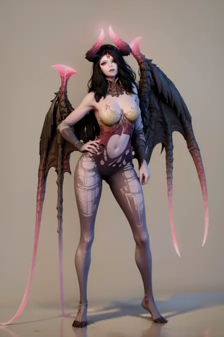 Other prompts : succubus, demon wings, wings, large breasts, demon girl