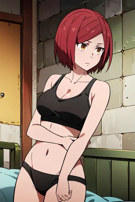 スポーツブラ、オレンジ色のジャケット、ジャンプスーツ、開いた服、ジャケット、ブラックブラ