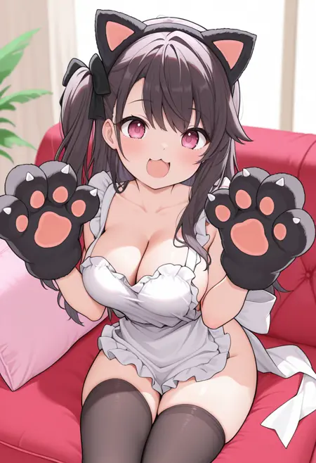 나체의 에프론, 검은 허벅지 양말, 동물 손, 가짜 동물 귀,