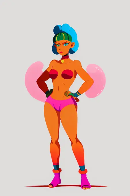 이 스타일에서는 손 부분의 표현이 다소 부족한 편이라고 생각합니다. 리리 드 벨론 특유의 단순하고 어린아이 같은 손 그리기 스타일은 1.5 버전과 튜닝 모델의 주요 데이터셋에서 심각하게 피하는 편이라서 그런 것 같습니다.