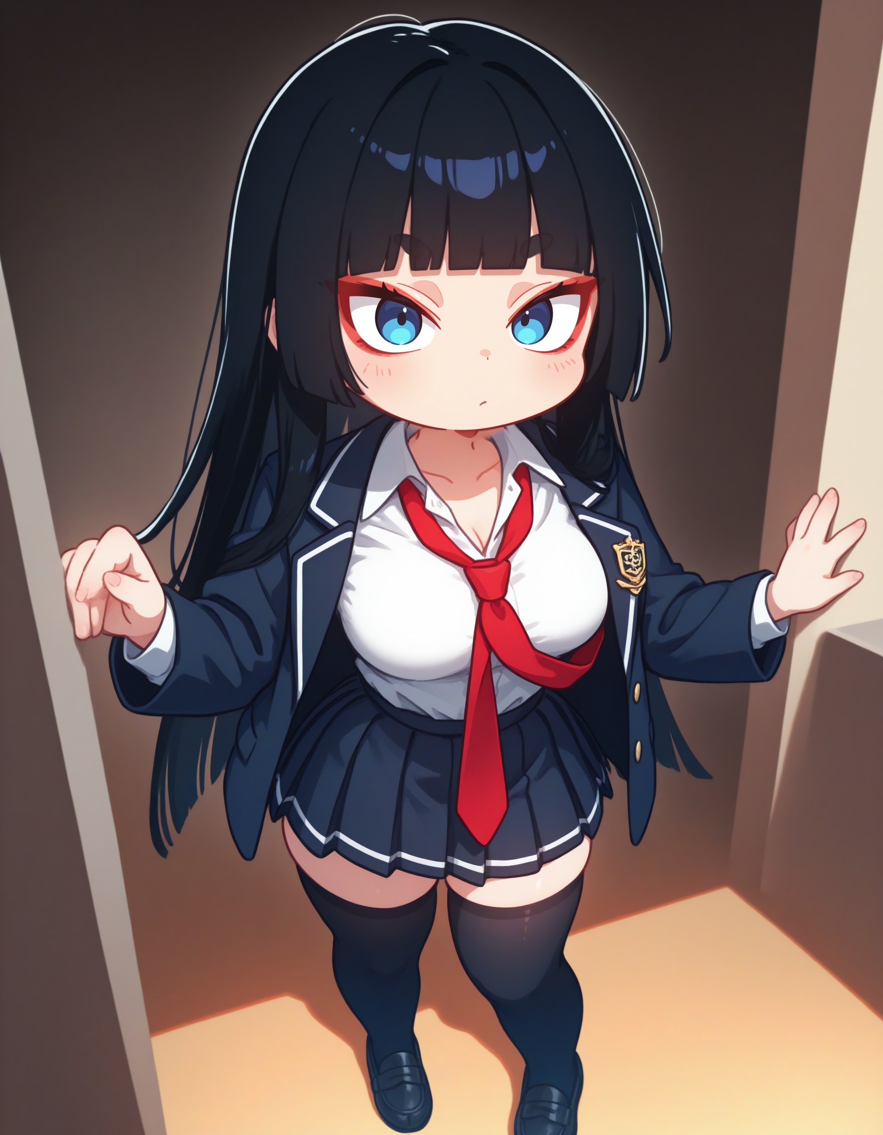치비 미학: 캐릭터는 유혹적으로 귀여운 초과형(치비) 스타일로 묘사되며, 단순화된 해부학 구조를 특징으로 하며, 보통 작은 몸체와 비례적으로 큰 머리를 가집니다.