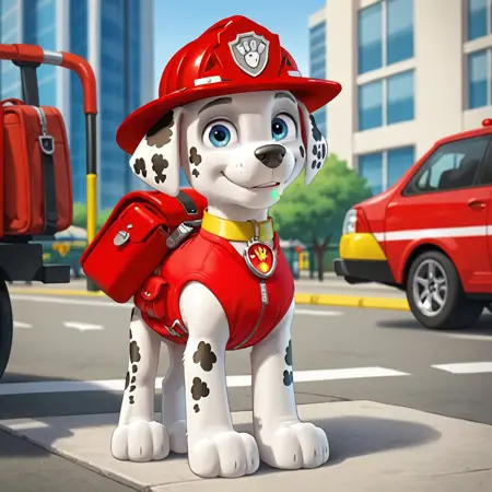 『パウ・パトロール』のマーシャルのキャラクターモデル。
