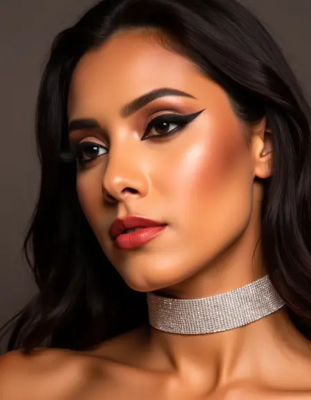 请使用“水钻项圈”和0.7~1的强度。模型经过特写图片训练,但也适用于全身图像。