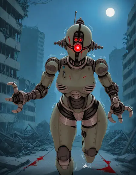 이 로라는 '포크래프트(Fallout)' 시리즈에 등장하는 아싸울트론 136장의 정성스럽게 선택된 이미지들로 훈련되었습니다. 3D/SFM 이미지는 포함되지 않고, 오직 디지털 아트만 포함됩니다. 얼굴과 단일 안구 표현은 매우 잘 되며, 손톱 팔도 때때로 잘 구현되지만 일관성은 다소 부족합니다. 이 모델은 danbooru 스타일의 태그를 기반으로 훈련되었기 때문에, 프롬프트 시에도 해당 태그를 사용하세요. 태그는 아래 "훈련 이미지" 다운로드에 포함된 .txt 파일에 포함되어 있습니다.