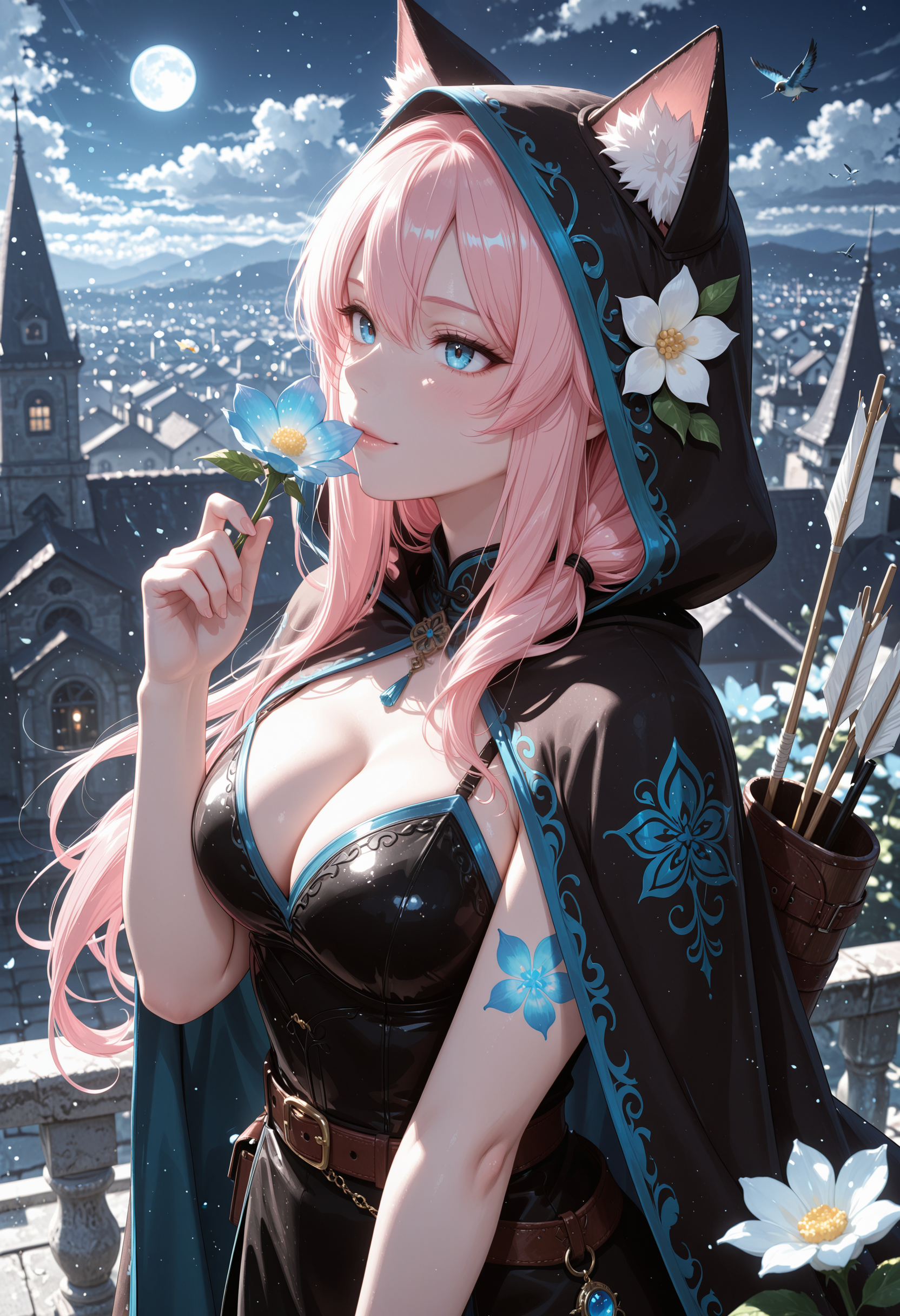 Aeliana Bluebloom is a graceful nekomimi who strolls through sunlit alleys with elegance and charm. Known for her pastel-pink hair, glacial blue eyes, and signature bluebloom flower tattoo, she’s a muse for dreamy portraits, fashion photography, and anime cinematic frames.