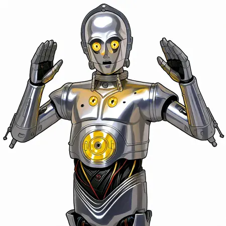 由于R2D2对他至关重要,此LORA已与他的朋友共同训练!该LORA亦应能与人类及其LORA互动。可通过使用“男性人类”或“女性人类”强制触发。使用负面提示移除不需要的特征,如鼻子、躯干螺栓或R2D2。