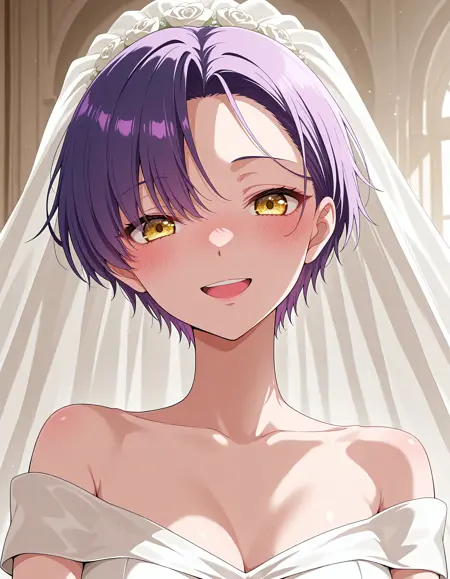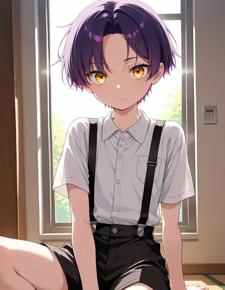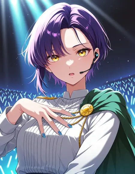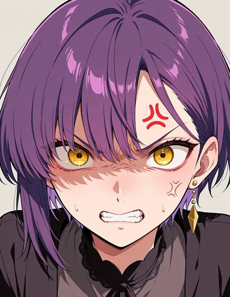 short hair, purple hair
