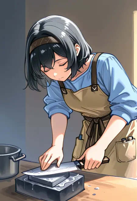 剣やナイフを研ぐための概念LoRA。主に砥石を使って刃を研ぐ画像で学習させました。このような画像を生成したかったのですが、danbooruのタグが機能せず、このためのLoRAを作成した人がいないようでした。そこで、このLoRAを作成しました。LoRAの重みは1.2、あるいはそれ以上で最も効果的です。スタイルLoRAを併用すると出力が安定することがわかりました。両方のトリガー語を一緒に使用してください。