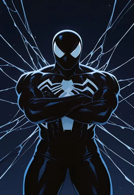 unlimitedsymb_spider/(marvel)XL. symbiote, mask, bodysuit, muscular, spiderprint, 1boy, solo, blacksuit,