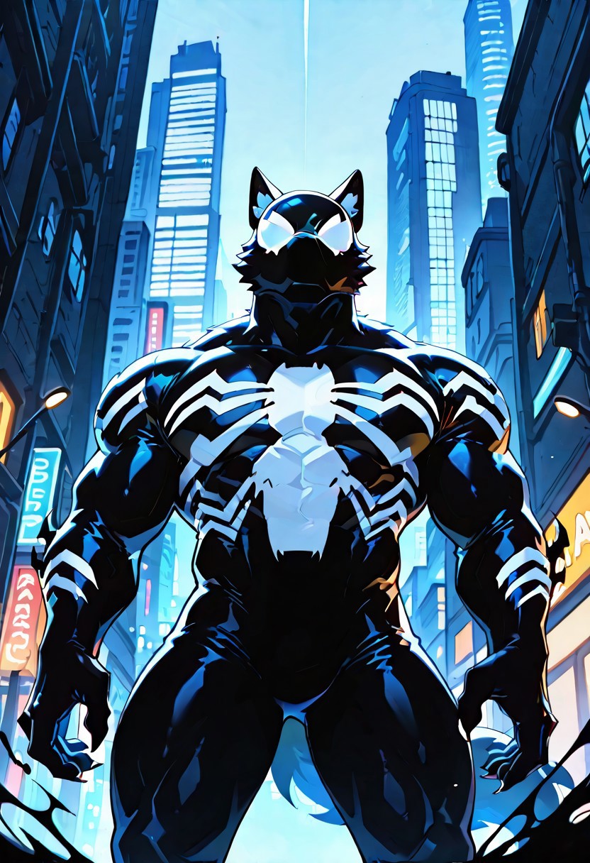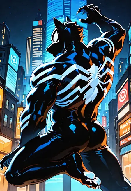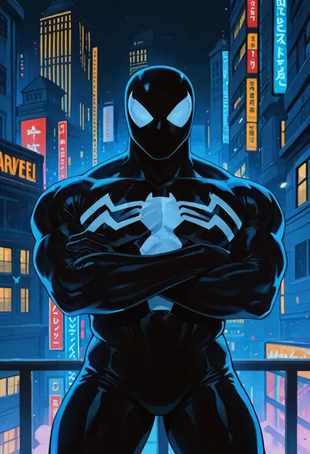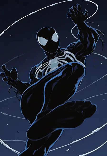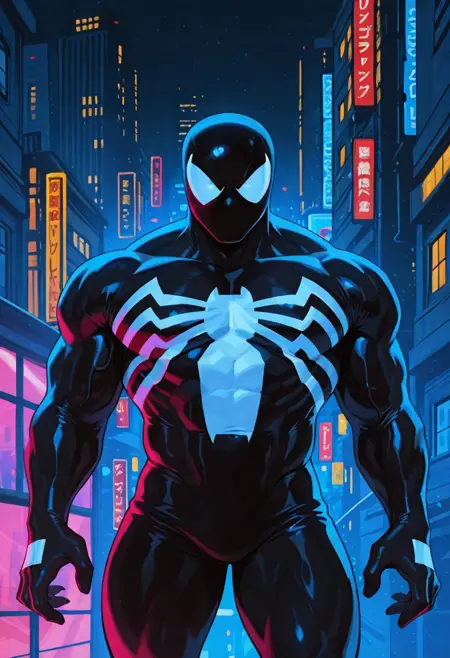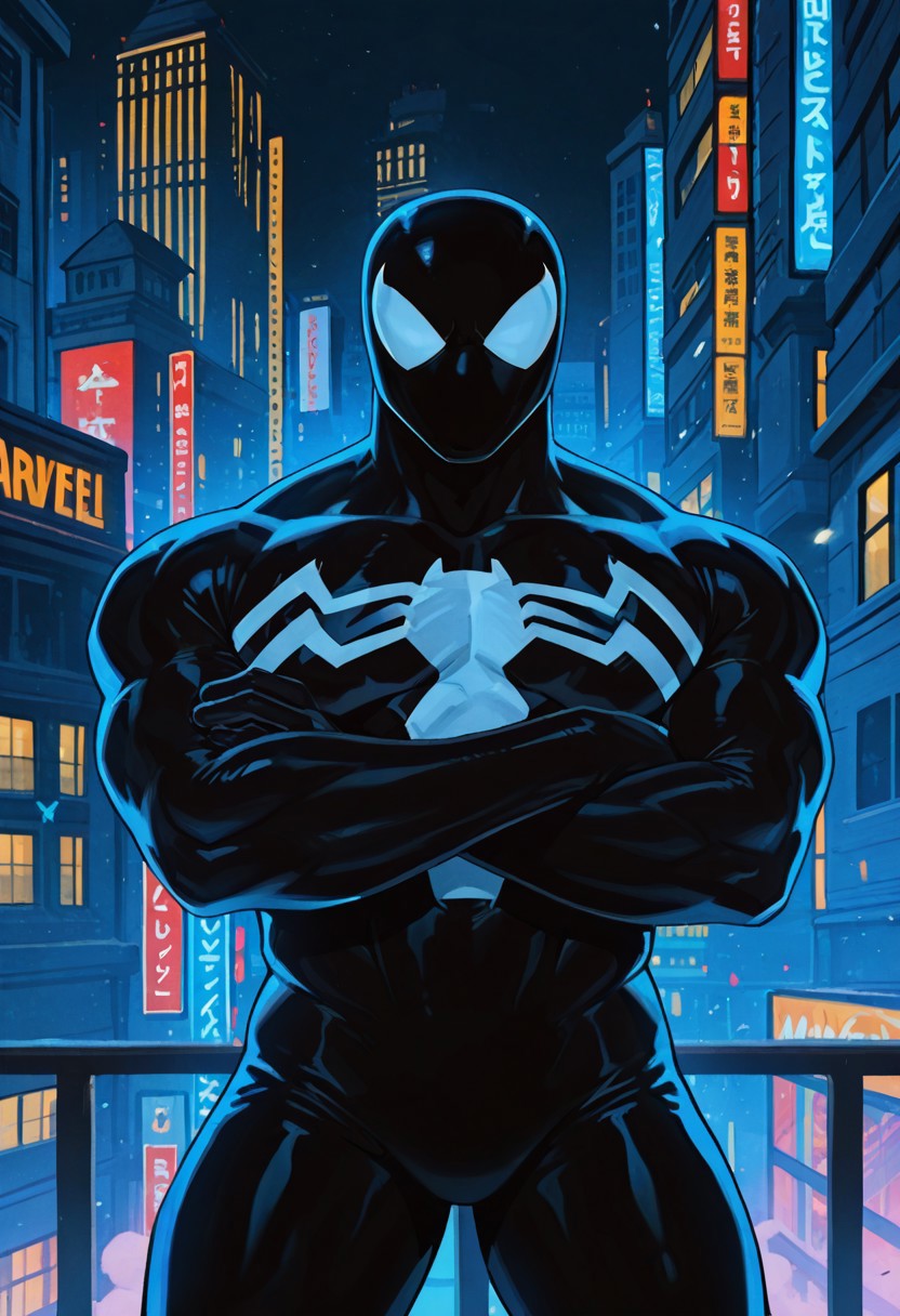 unlimitedsymb_spider/(marvel)IL. symbiote, mask, bodysuit, muscular, spiderprint, 1boy, solo, blacksuit,