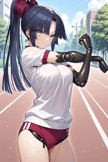 katou danzou (fate), 노란 눈, 폰테일, 관절, 팔 나이프, 기계 팔, 인형 관절, 갈라진 앞머리, 단일 기계 팔, 긴 머리, 로봇 관절, 안드로이드, 높은 폰테일,