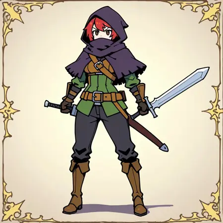 额外:兜帽,腰带,长裤,皮甲,靴子,斗篷,围巾,盗贼,武器,剑
