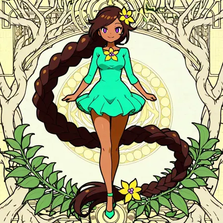 园丁:StC,StC_G,棕发,异常长发,单条辫子,紫色眼睛,深色皮肤女性,发饰,花朵