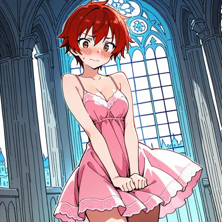 额外:红色连衣裙,蓬松袖子