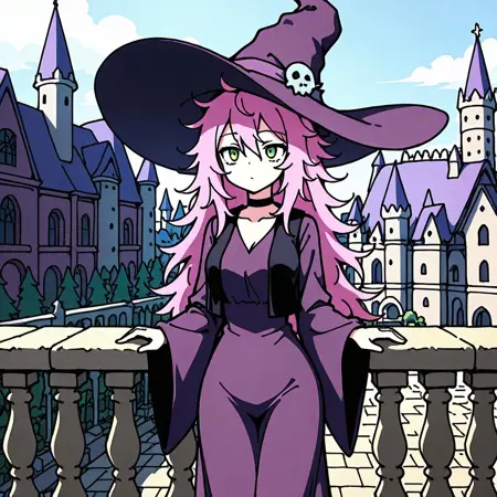 额外:女巫帽,长裙,紫色长裙,项圈,女巫,背心