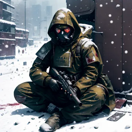 基于各种末日后的图像、风景和角色艺术训练而成。