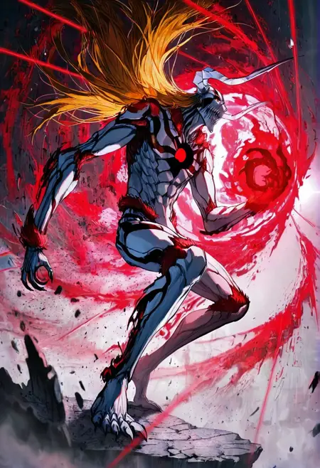<lora:lora_ichigo_multi_form:1.1>, ichigoKRSK, form:vasto_lorde, horns:true, white_armor,