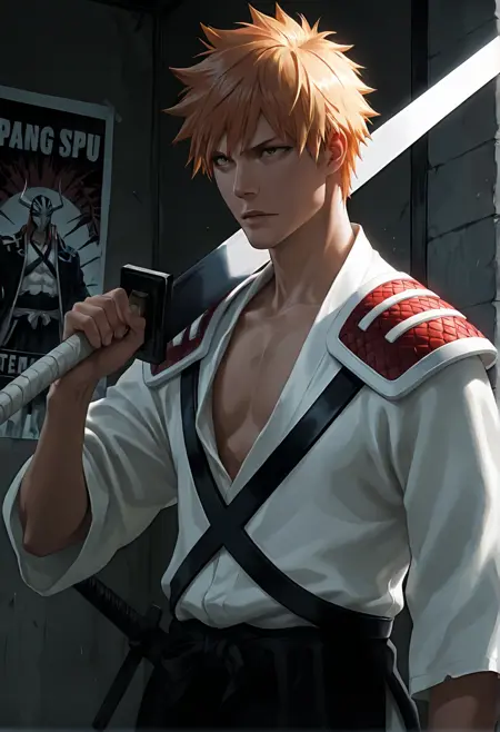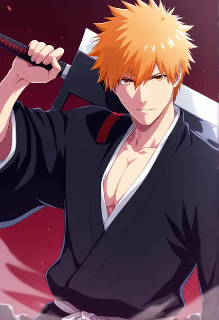 <lora:lora_ichigo_multi_form:0.95>, ichigoKRSK, form:base, outfit:shinigami, weapon:zangetsu,