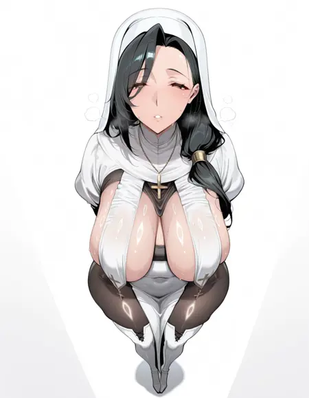 breast curtains,thigh boots,white boots,black pantyhose,puffy sleeves,white gloves,elbow gloves,