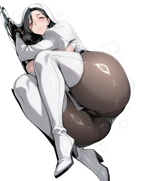 thigh boots,white boots,black pantyhose,puffy sleeves,white gloves,elbow gloves,