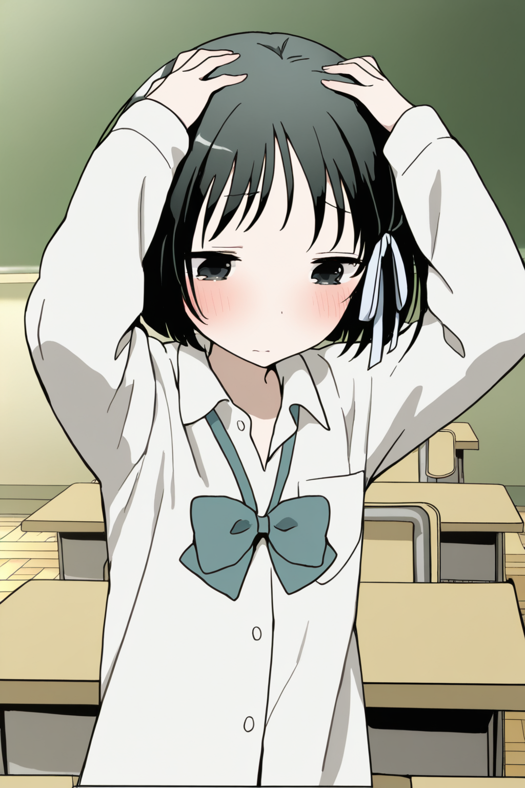 Hairstyle: bob cut, short hair, hair ribbon, ribbon