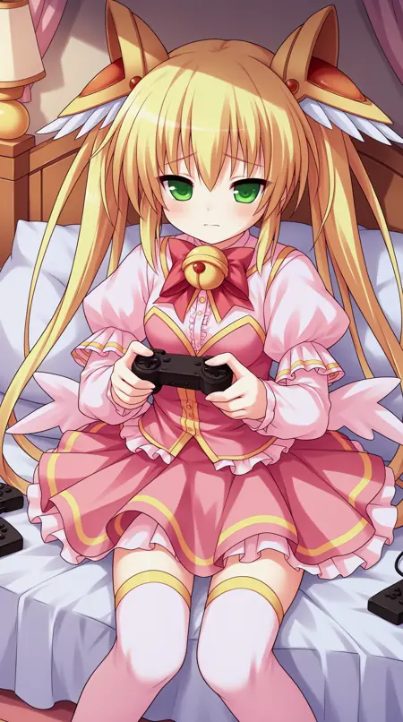 skirt, dress, bell, magical girl, staff, wand, white thighhighs, shoes