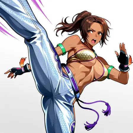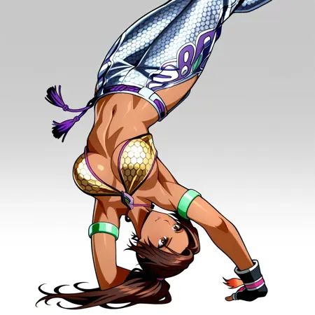 | 학습된 단어 | tekken_(christiemonteiro), 1girl, solo, dark-skinned female, brown eyes, brown hair, ponytail, large breasts, yellow crop top, criss-cross halter, rope belt, underboob, green armlet, fingerless gloves, silver pants, hip vent복사됨! tekken_(christiemonteiro), 1girl, solo, dark-skinned female, brown eyes, brown hair, long hair, large breasts, tied shirt, front-tie top, crop top, green shirt, denim, denim shorts, short shorts복사됨! sunglasses, eyewear on head복사됨! |