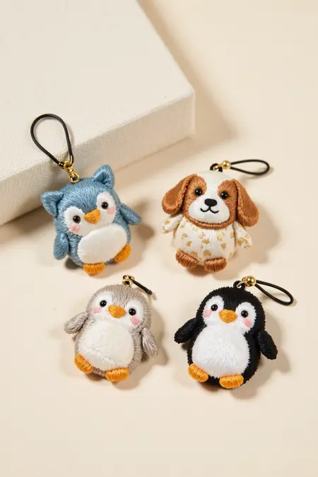 刺繍工芸品のペンダント、ペンギンや犬のような魅力的な動物デザインを特徴とし、繊細な刺繍技術、かわいらしいスタイル、柔らかい色合いを活かし、日常使いにぴったりです。