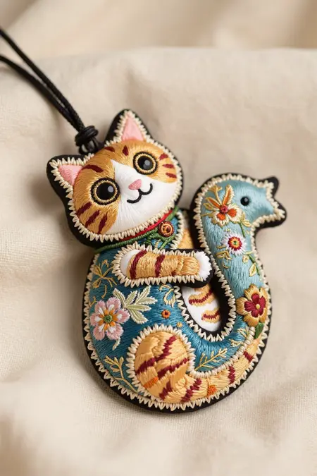 刺繍工芸品のペンダント、猫やイルカのような鮮やかな動物の形態を描き、豊かな刺繍の色使い、芸術的な模様、繊細な仕上げで、アクセサリーに最適です。