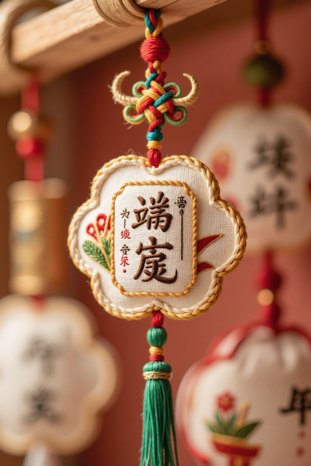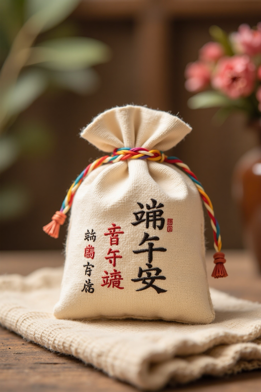 모든 내용은 단오축제 장식과 관련됨. 레트로 스타일의 향주머니를 제작하고, 자연스러운 린넨 소재를 사용해 전통적인 축제 문구를 인쇄하세요.