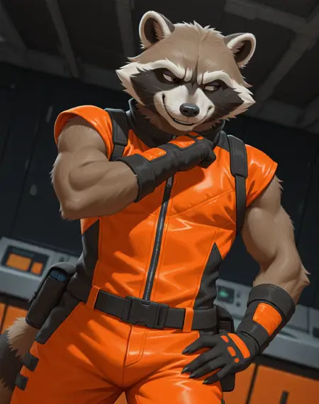 这是一个适用于漫威漫画角色火箭浣熊的Illustrious风格LoRA。此处的火箭浣熊形象基于他在漫画中所穿的橙色服装。