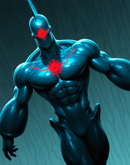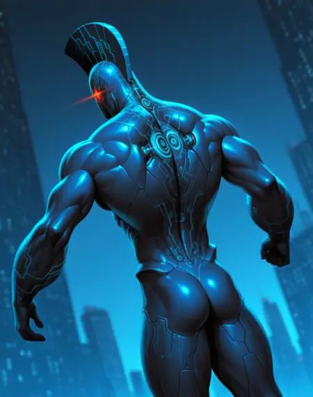 漫画中的角色通常全身布有发光的蓝色细电路纹路,但使用大多数模型尝试提示这一效果时,反而会生成模糊厚重的电路纹路。此外,有时提示“红色单眼”也会导致电路纹路莫名其妙地变成红色。
