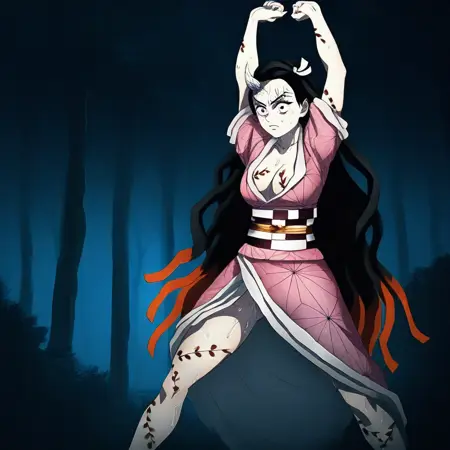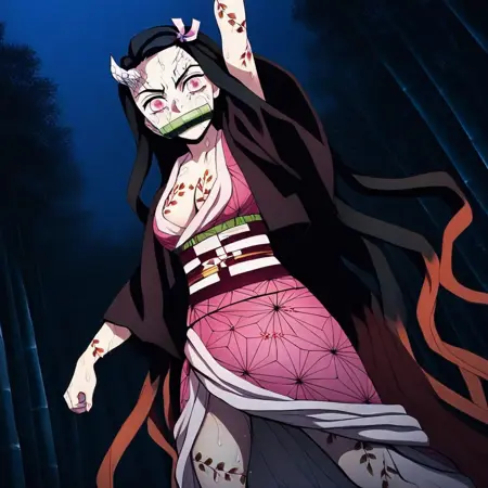 | Trained Words | N_A_L, traditional layered kimono — medium-to-deep pink kimono with repeating geometric asanoha/hemp-leaf tessellated pattern, white inner collar/juban visible, dark charcoal/near-black haori, wide maroon-and-white obi with layered bands and a thin cord, small rectangular obi ornament, bamboo gag tied across mouth, small pink hair ribbon at the side, white split-toe tabi socks, slight rips, Copied! |