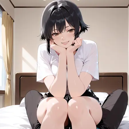 KillaFemale, 갈색 눈, 검은 머리, 단발, 머리 끝부분, 중간 크기의 가슴, 옆머리