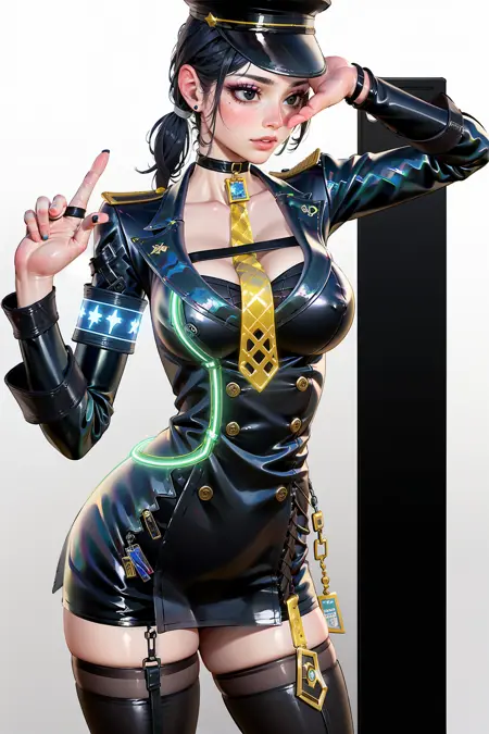 触发词(Trigger word)****: shayol wei,1girl,thighhighs,necktie,thigh boots,uniform,jewelry,armband,choker,latex,see-through,short dress,