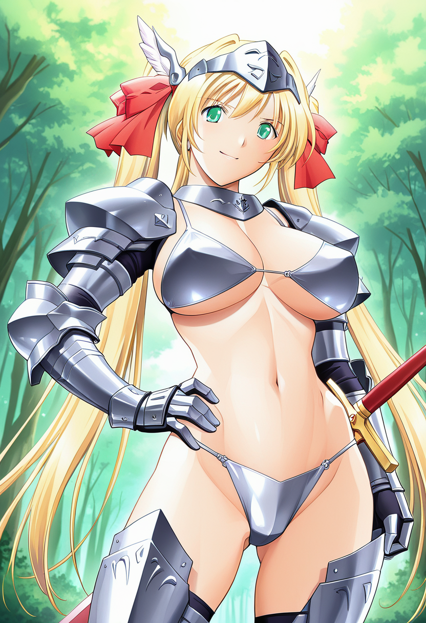 트리거 단어: ak3h1me_sak1, 금발, 녹색 눈, 더블테일