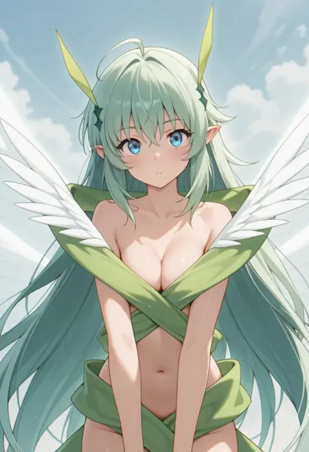 트리거 단어: 가벼운 (이세계 사기 마법사), 긴 머리, 녹색 머리, 파란 눈, 뾰족한 귀