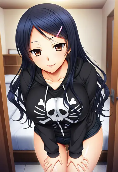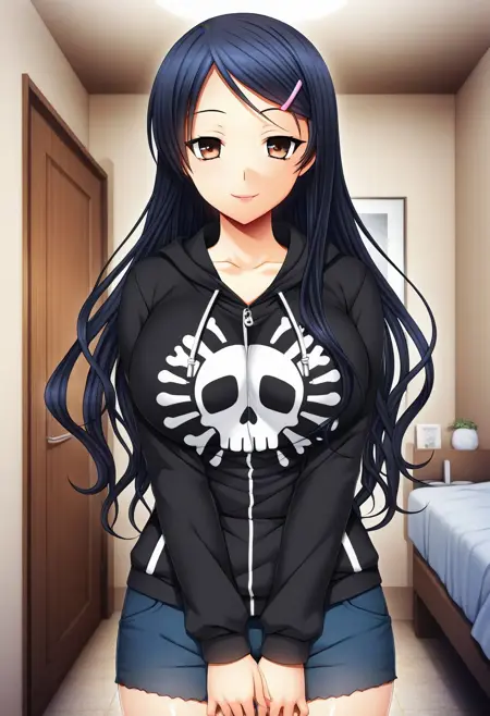 推荐提示词:Aya Kanda, 棕色眼睛, 黑色头发, 长发, 发夹,