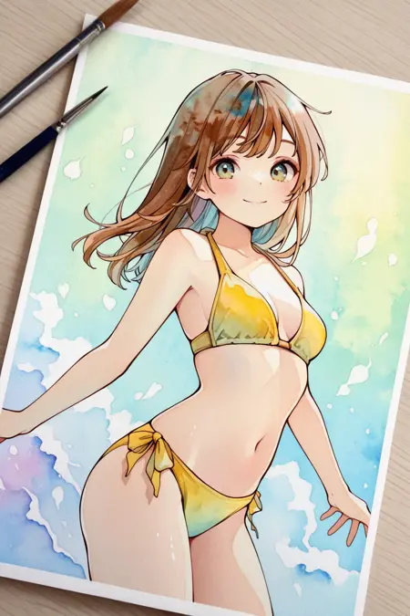 触发词: watercolor_anime_girl, very soft line, colorful, simple background