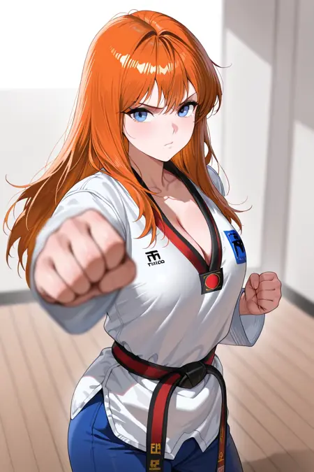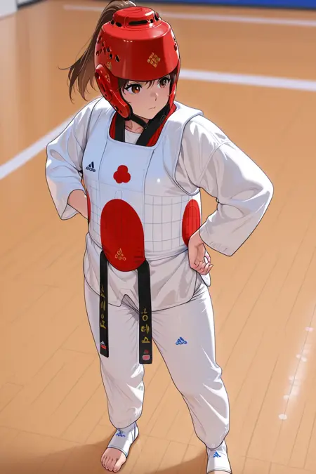 • 캐주얼한 룩을 원할 경우: dobokITF와 함께 dogi opened를 사용하고, sports bra, abs, midriff 등의 단어를 추가하세요.