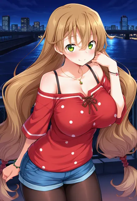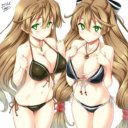 | トレーニングワード | brown hair, very long hair, twintails, bangs, hair between eyes, hair bow, green eyes, large breasts,コピーしました! yuuki-uniform, white shirt, short sleeves, yellow sweater vest, red tie, blue skirt, pleated skirt, plaid skirt,コピーしました! yuuki-casual, red shirt, polka dots, bare shoulders, off shoulder shirt, bra straps, necklace, bracelet, denim shorts, black pantyhose,コピーしました! yuuki-swim, black bikini, white stripes, front-tie top, side-tie bikini bottom, cleavage, necklace,コピーしました! |