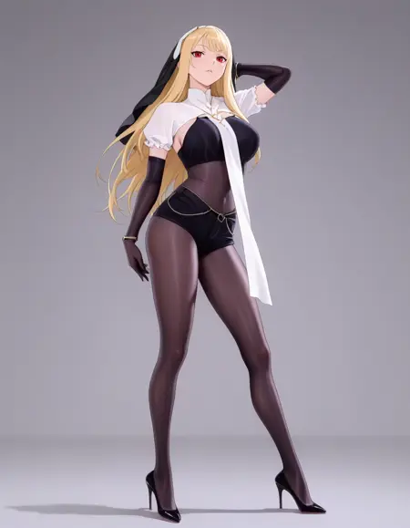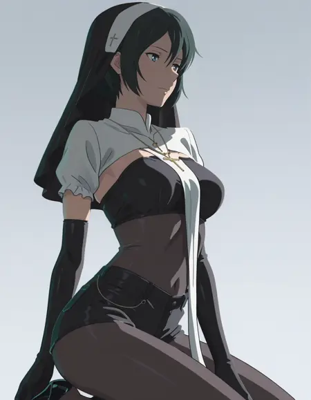 A mini sized LoRA model with bad nun No.2 outfit worn by BJ.