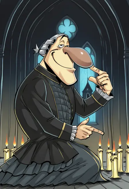 このLoRAはドクター・リブスキーの上半身ショットで最も良く機能します。全身ショットはやや不安定ですが、時々良い結果が出ます。全身ショットの画像は非常に少なく、ドクター・リブスキーはそれらで最も苦手です。一方、顔のクローズアップは面白いほどよくできており、オリジナルアニメからの画像が最も多く使われています。