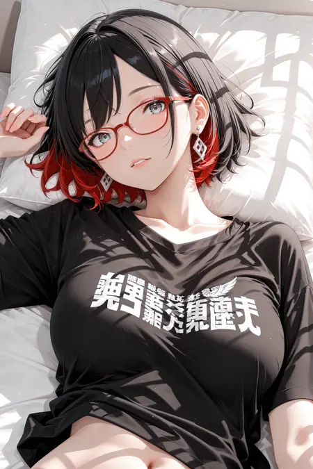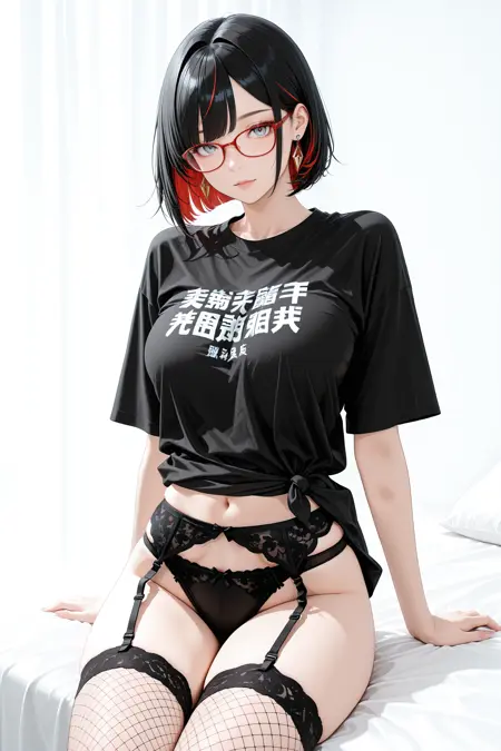 「hpashley1」を使用すると、特定に「Stay Black」の衣装を活性化できます。シャツのテキストは学習されていないため、一般的に黒いTシャツの方向に生成されがちです。場合によっては白くなることがあるので、「black t-shirt」とタグを付けて強調することをお勧めします。