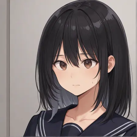 kana,medium hair,black hair,grey inner hair,brown eyes