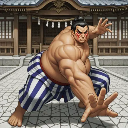 ストリートファイターIIで登場した相撲力士のエドモンド本田・・・もどきやー、これじゃただの相撲力士やー。