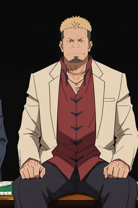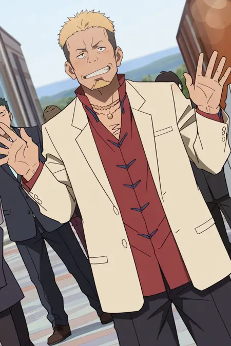 animecharacterbaradaddychinesemuscularhandsomeasiansuitmuscular malemasculinebrown eyesyaoianime charactermalemanshort hairasian manbeardformal wearmustachescarmature manblond hairhunkdilfmale charactermuscular manstubblegoateesanpakugangstaathletic bodygreat pretendershihakuganchinstrap beardchen yaochinese man